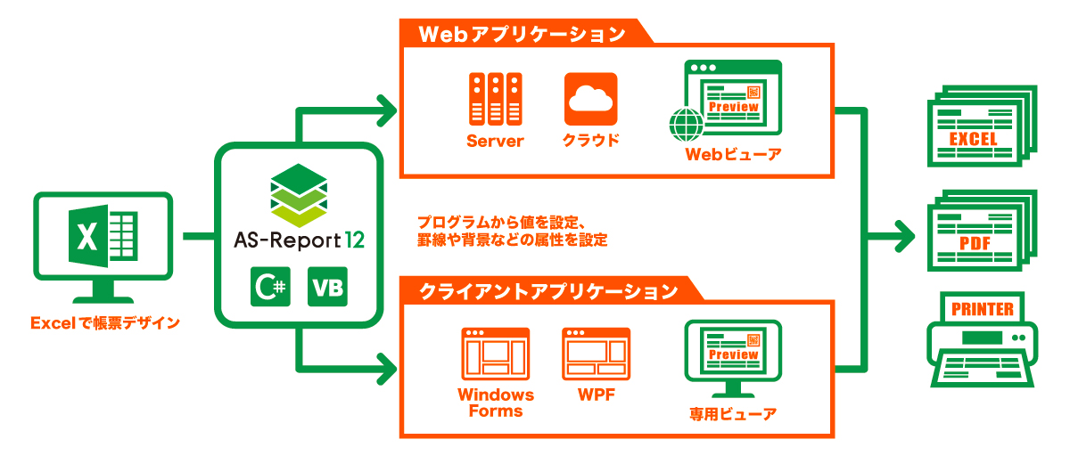 「AS-Report 12」は、使い慣れた Excel で帳票デザインを作成する帳票開発ツールです。